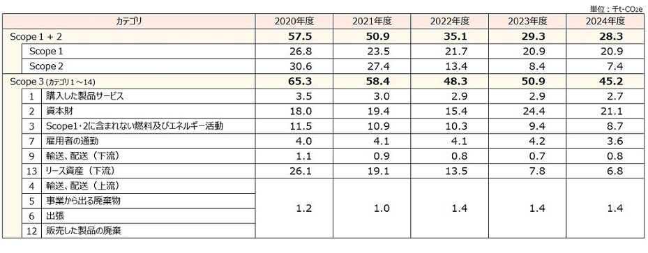 (注1)Scope1・2は、「地球温暖化対策の推進に関する法律」に基づき公表されている「エネルギー別排出係数」および「電気事業者別の調整後排出係数」を使用し算出。