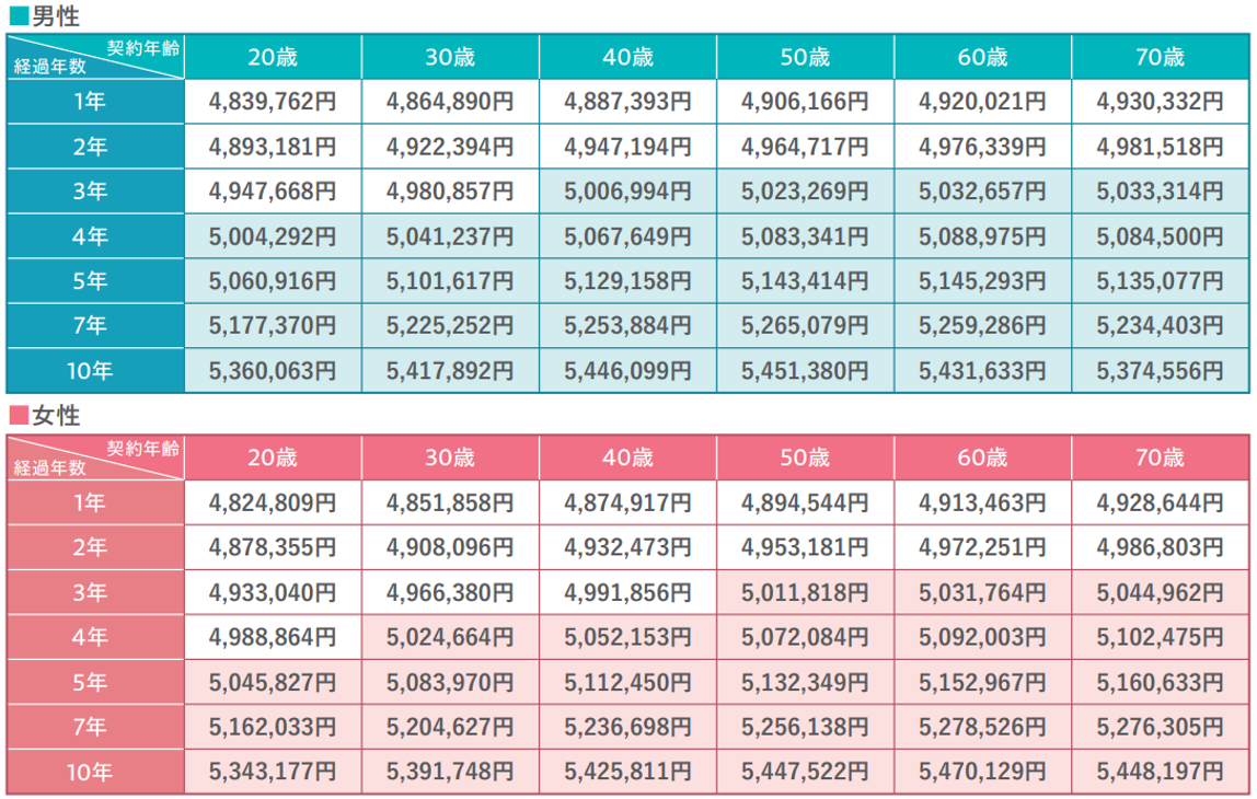 <解約返戻金額表>