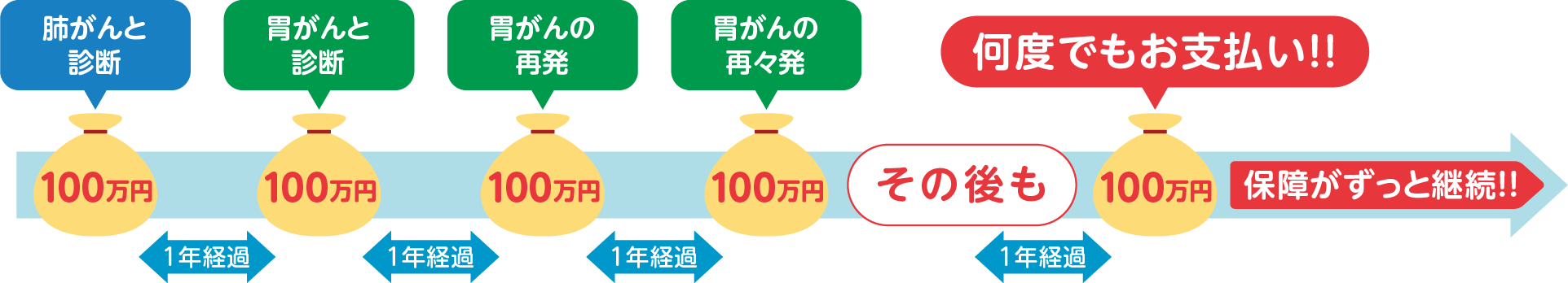 <お支払いイメージ> 複数回型、がん診断一時金100万円の場合